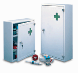 Μεταλλικό φαρμακείο με κλειδαριά απαραίτητο για τις πρώτες βοήθειες.